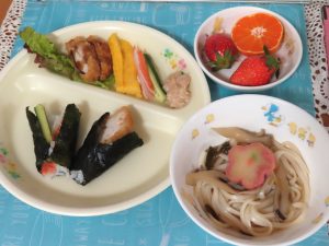 チキンカツにツナマヨ、玉子焼きにキュウリにカニカマ・・・