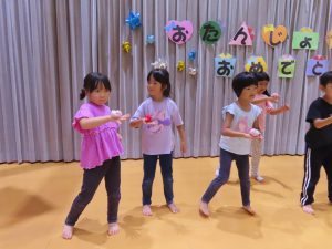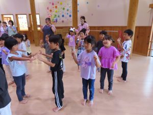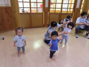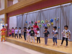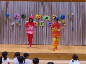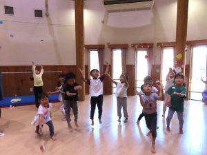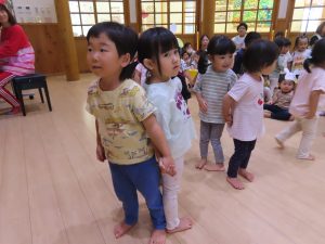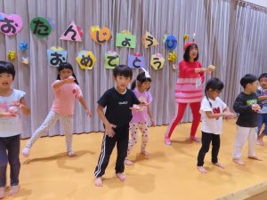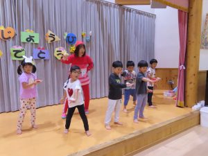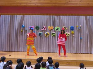 あきポンとみきポンと一緒に、あそびうたや体操を楽しみました♪